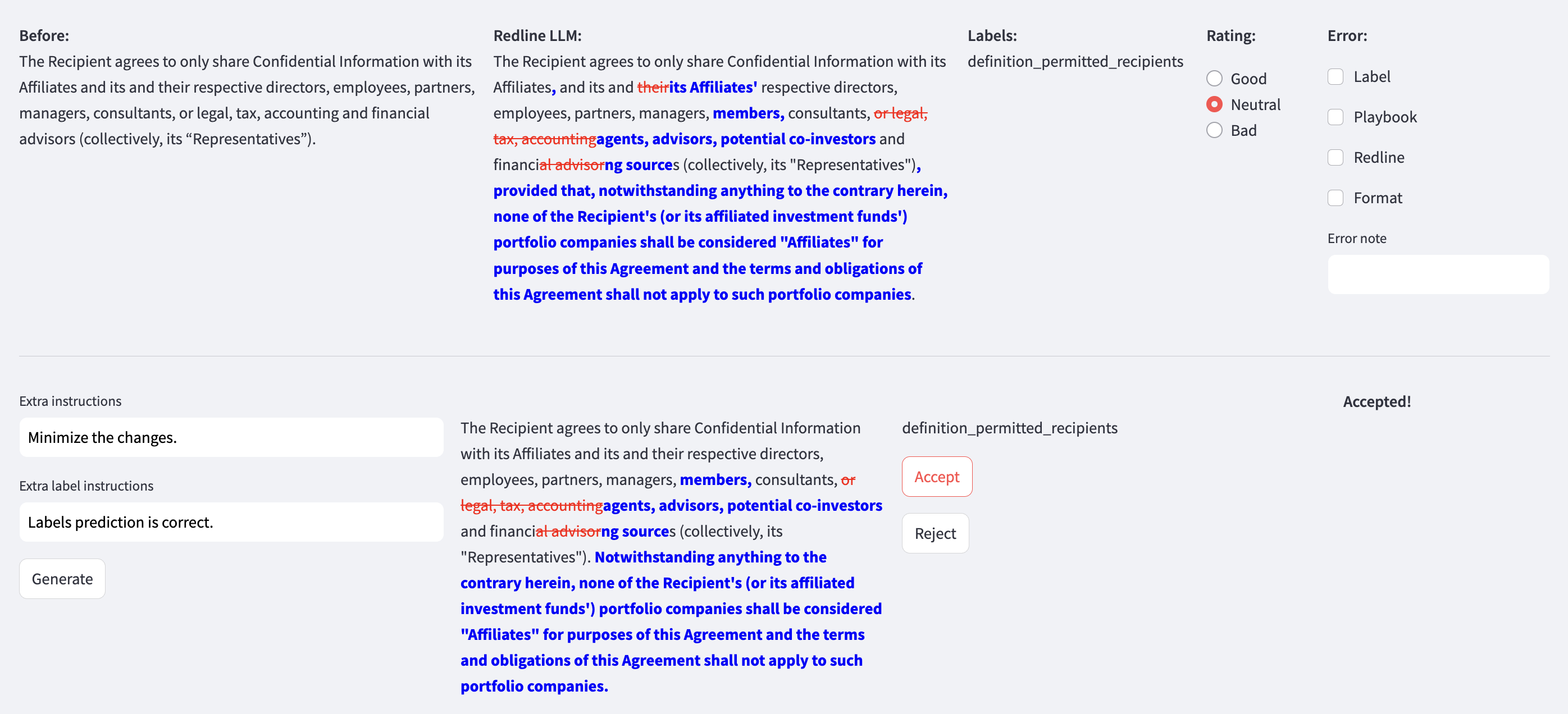 Screenshot from one of our annotation apps for contract review and editing